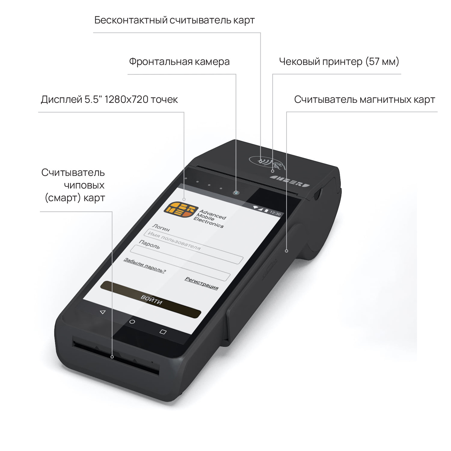 Полнофункциональный POS-терминал для приема платежей всеми видами банковских картам и оплаты по QR-коду