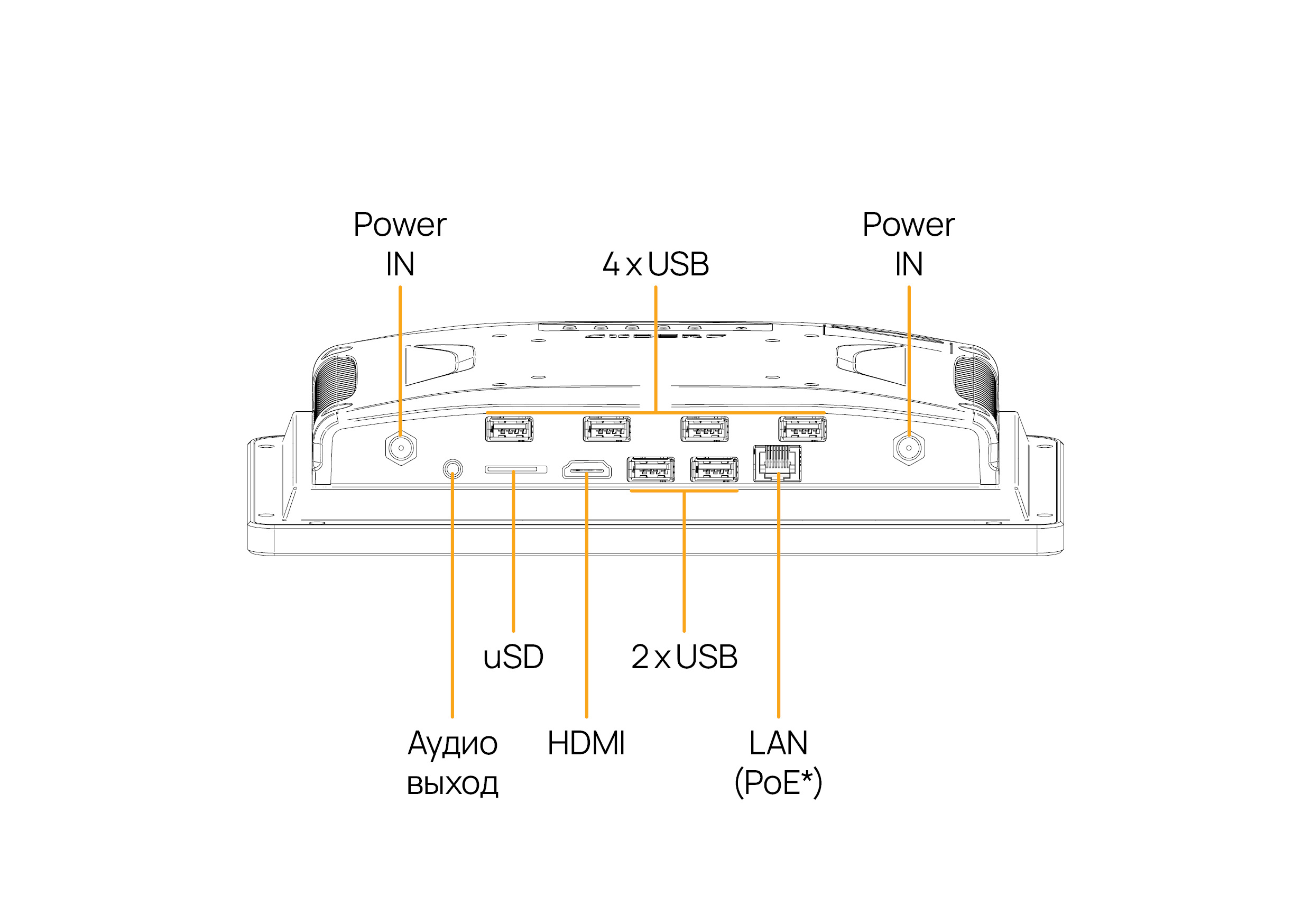 | Опционально | Ридер карт 2 дорожки (MSR), Дополнительный монитор 10.1-15.6″ (SVGA/HDMI) |