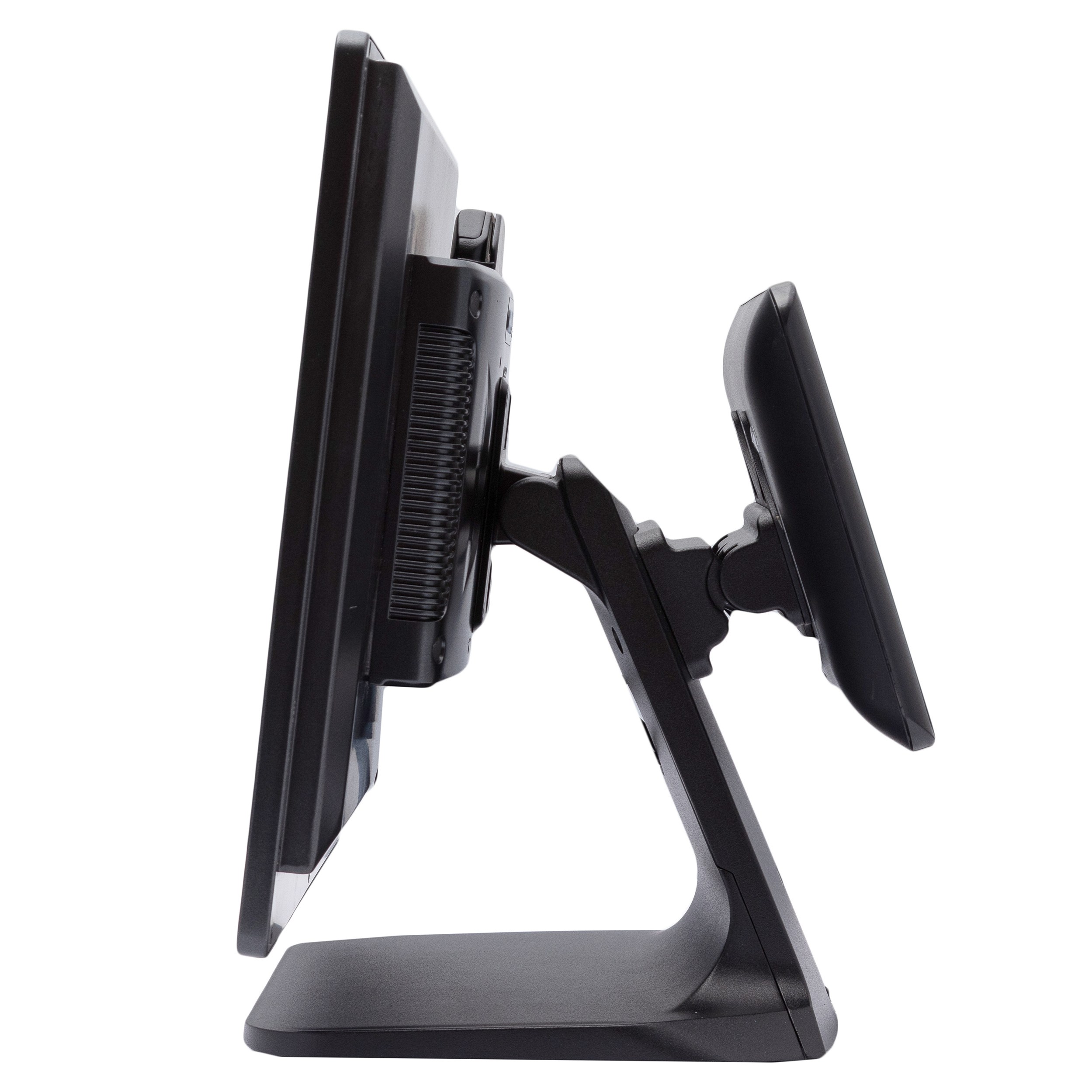 Компактная POS-система на ОС Windows с сенсорным экраном. Богатый набор интерфейсных портов обеспечивает подключение большого количества периферийных устройств: принтер чеков, сканер штрих-кода, весы, ПИН-пад (банковский терминал).