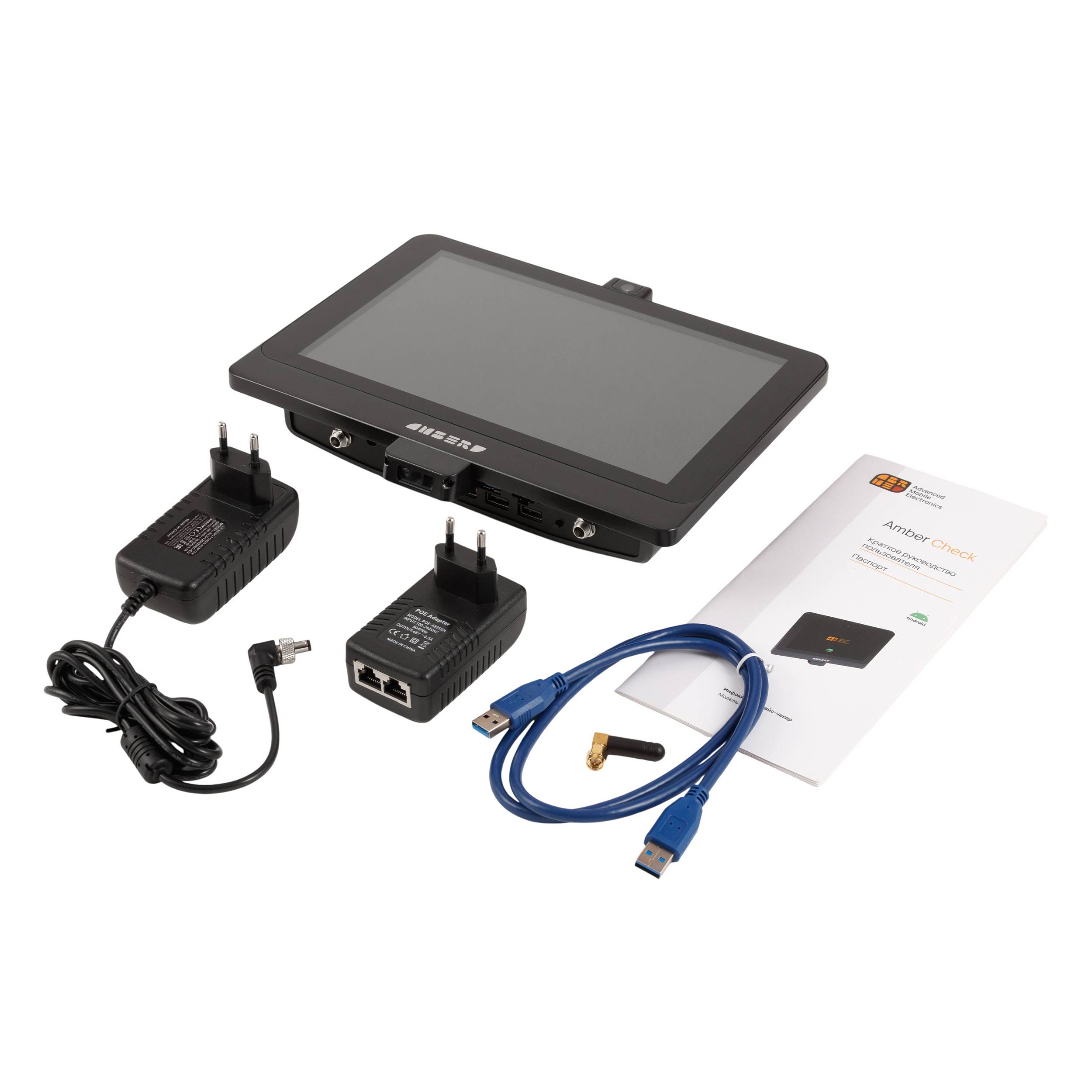Устройство Аmber Check10 AS с ОС Android представлен в исполнении с диагональю 10.1 дюймов. Инфокиоск работает от блока питания, или Ethernet (LAN с поддержкой PoE). Взаимодействие с товароучётной системой осуществляется по локальной сети Ethernet или с помощью встроенного модуля WiFi.