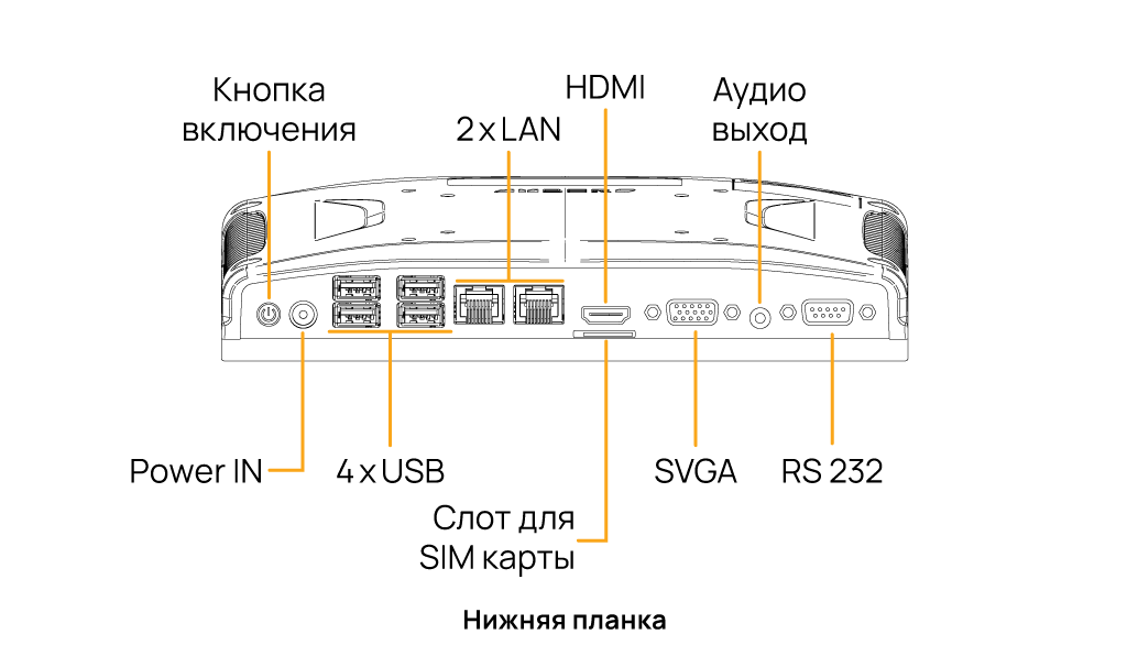 | Интерфейсы подключения | 2 x USB 3.0, 2 x USB 2.0, 2 x RS232 2 x USB 3.0, 2 x USB 2.0, RS232, HDMI, SVGA, Аудиовыход 2Вт |