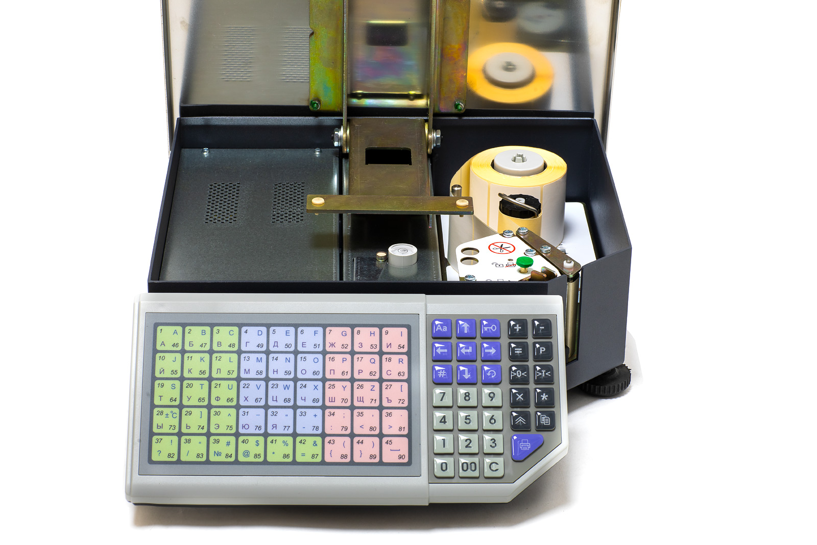 Удобные весы с печатью этикетки, которые одинаково успешно могут использоваться как для фасовки товара, так и для работы в торговом зале. Клавиатура весов размещена внизу, двусторонний вакуумно-флуоресцентный дисплей покупателя хорошо виден над холодильными витринами-прилавками.